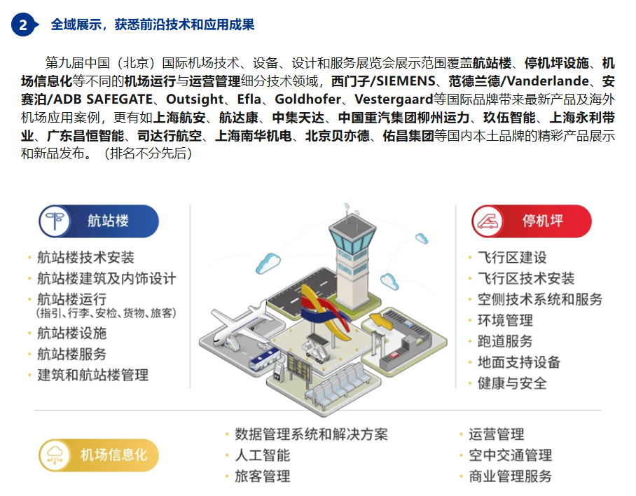第九届中国(北京)国际机场、技术、设备、设计和服务展览会(inter airport China 2024)将于9月4-6日在北京·中国国际展览中心(朝阳馆)举办。展会以“创新发展,连通世界”为主题,与全球机场专业人士和相关企业共谋未来发展趋势,打通行业发展关键节点。展览会同时响应 “一带一路”倡议,积极吸引“一带一路”沿线国家有关企业前来参与,帮助各方参与者获悉前沿技术和应用成果,推动交流与合作,推动行业高质量发展。
