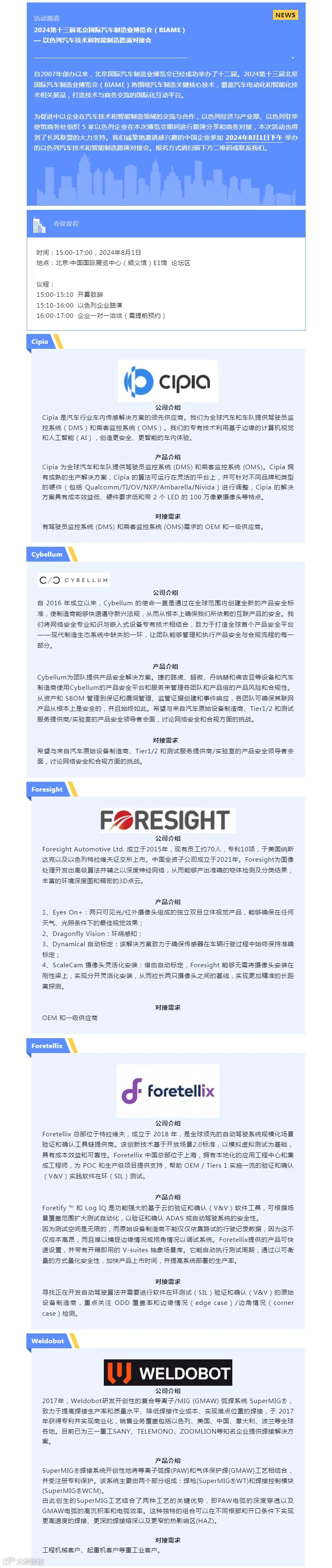 BIAME-2024 以色列汽车技术和智能制造路演对接会