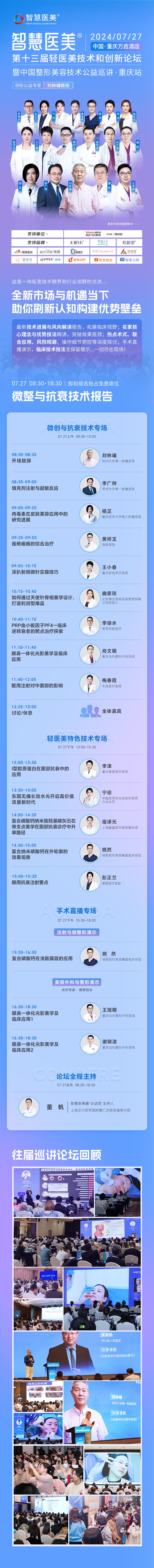 您好,由智慧医美主办的“智慧医美·第十三届轻医美技术和创新论坛暨中国整形美容技术公益巡讲(重庆站)”,将于2024年7月27日在中国重庆举行。