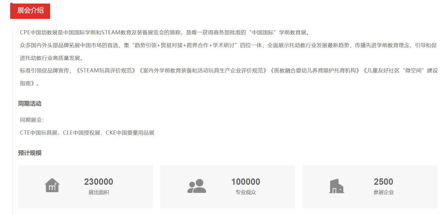 2024中国国际学前和STEAM教育及装备展览会(CPE中国幼教展)