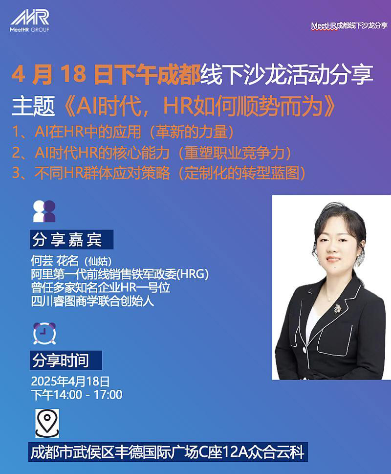 4月18日下午成都HR沙龙【AI时代,HR如何顺势而为】