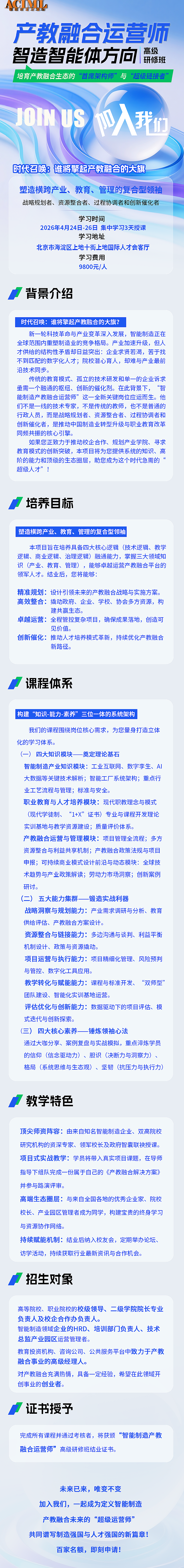 首期“智能制造产教融合运营师”高级研修班招生