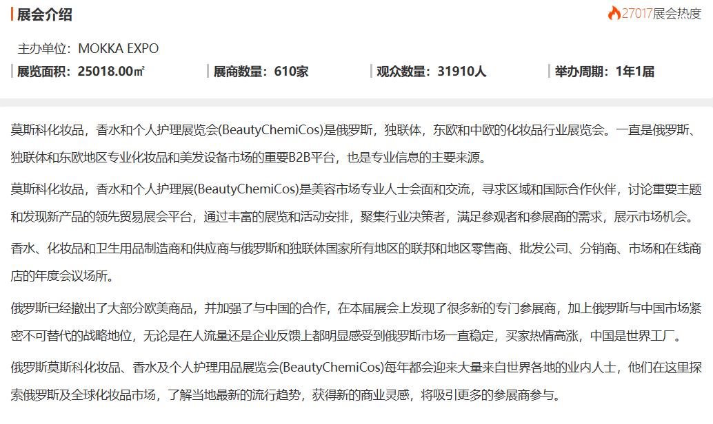2025年俄罗斯莫斯科化妆品、香水及个人护理用品展