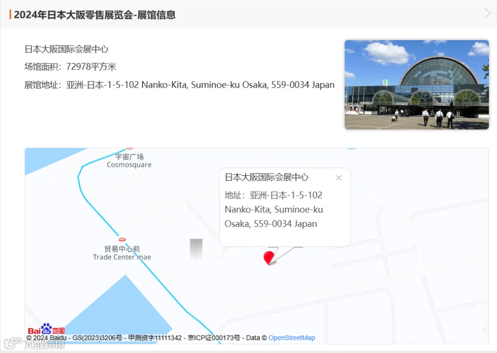 日本大阪零售展(RETAILTECH)上届展会总面积18000平方米,展商350家,分别来自中国、韩国、意大利、中国香港、俄罗斯、印度、土耳其、美国、墨西哥、英国,展商数量达到42000人。