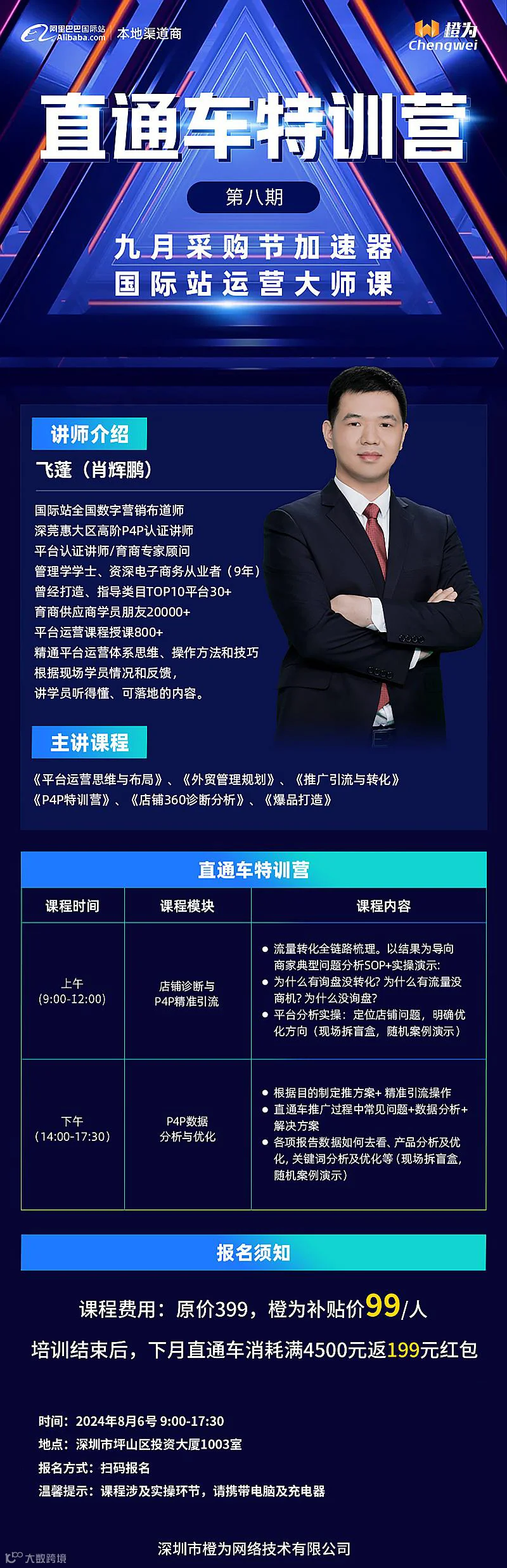 流量转化全链路梳理。以结果为导向商家典型问题分析SOP+实操演示:为什么有询盘没转化?为什么有流量没商机?为什么没询盘?平台分析实操:定位店铺问题,明确优化方向(现场拆盲盒,随机案例演示)根据目的制定推方案+精准引流操作直通车推广过程中常见问题+数据分析+解决方案