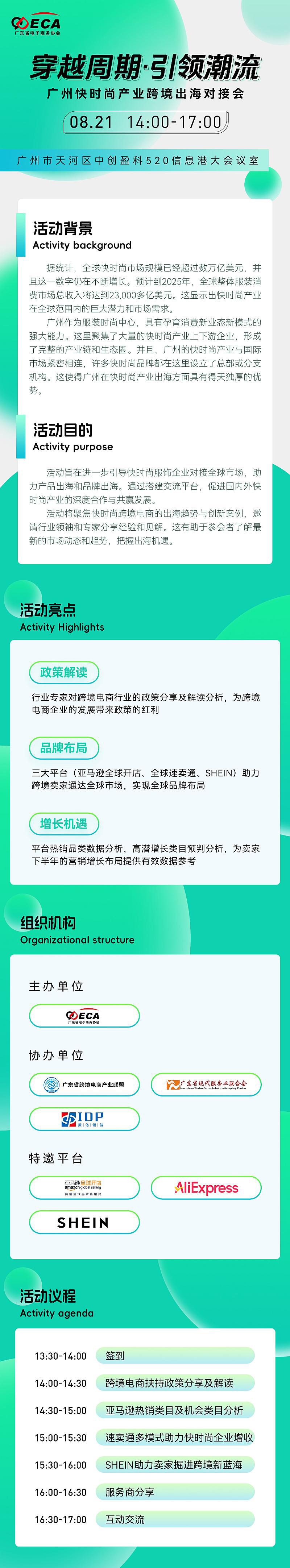 活动将聚焦快时尚跨境电商的出海趋势与创新案例,邀请行业领袖和专家分享经验和见解。这有助于参会者了解最新的市场动态和趋势,把握出海机遇。