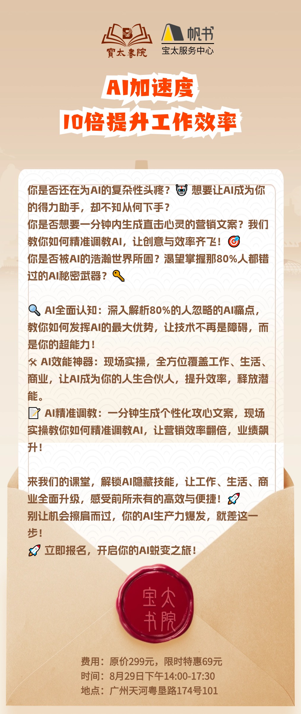 宝太书院精品沙龙第626期《AI加速度:10倍提升工作效率》