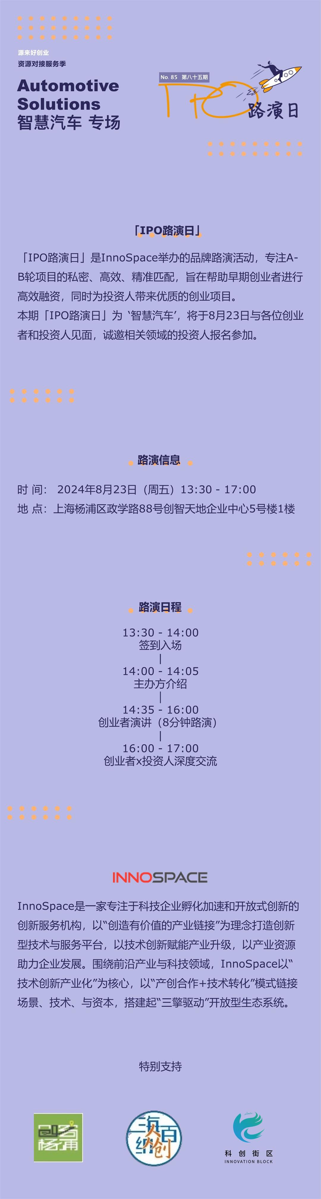 ‘源来好创业’资源对接服务季”IPO路演日智慧汽车专场 暨IPO路演日第85期