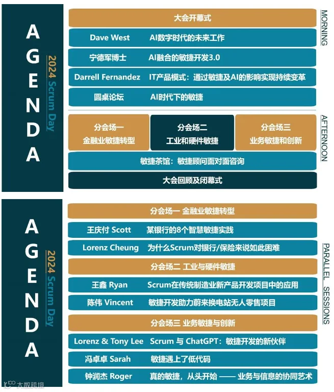 来自汽车、制造业、金融、科技、医疗等多领域的精英代表,携一手转型经验而来。他们不仅是行业的弄潮儿,更是敏捷实践的领航者,为您揭秘如何在复杂多变的市场环境中,运用敏捷思维实现企业蜕变。
