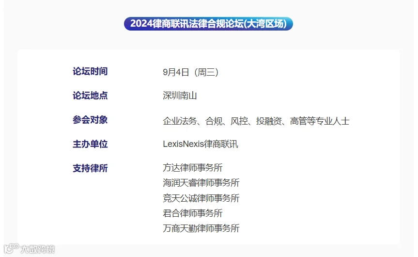 2024律商联讯法律合规论坛(大湾区场)| 聚焦 争议解决、数据跨境 等合规趋势