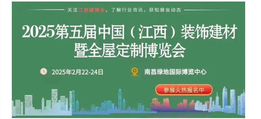 2025中国(江西)装饰建材暨全屋定制博览会将会以一场更加专业化、品牌化的盛会为广大定制家居、建材建装行业企业开发广阔的华中、华东、华南区域提供更加全面、高效的商业平台。