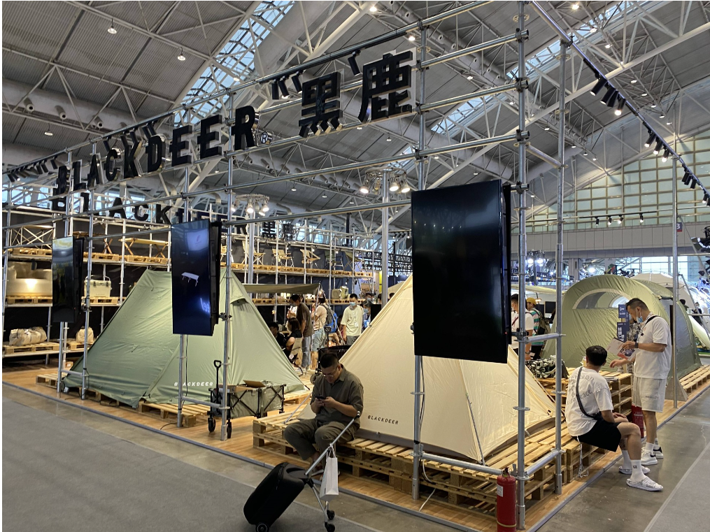 ◆ 露营展区(露营场景区):户外帐篷、睡袋、户外折叠桌椅、露营推车、旅行袋、毯子、客厅帐/天幕、地钉、露营枕头、露营睡垫/行床、充气泵、防潮垫、地席、户外眼镜、望远镜、冷藏箱、指南针、户外手套、户外手电筒/头灯、户外灯、露营灯/灯条/青蛙灯、应急灯、户外储能设备、新能源光伏板、灯箱、户外电源、户外、户外水、水具、户外手表、毛巾、望远镜、装备袋/工具箱/月光宝盒(RV桶)、收纳篮、露营风扇、野餐垫、露营延长线、品包、装备修补包、防蚊用品、捕蝇工具、指南针/定位系统等。