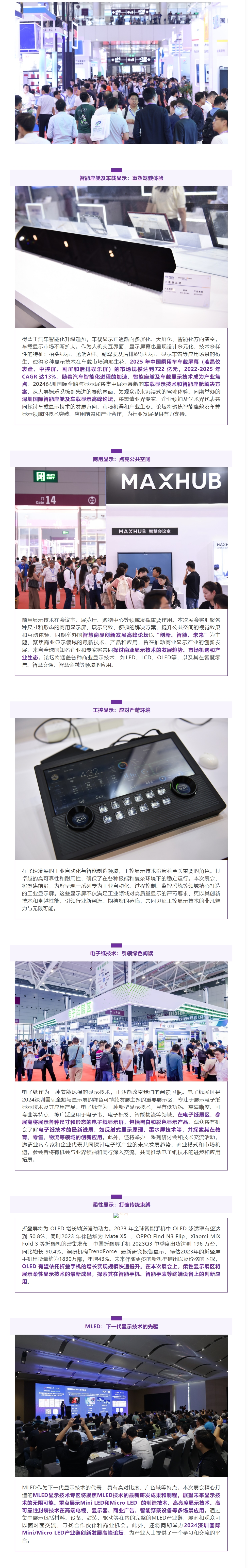2024深圳国际全触与显示展将为大家带来技术创新与应用场景创新两大创新主题展示,技术创新板块将包含“Mini/Micro LED显示技术专区”、“柔性显示技术专区”、“电子纸技术专区”,应用场景创新板块将包含“智能座舱与车载显示展示专区”、“VRAR创新应用展区”、“智慧办公与教育创新展区”,细分化的内容再为您厘清最新技术前瞻的同时,也将为显示触控行业未来发展描绘蓝图。