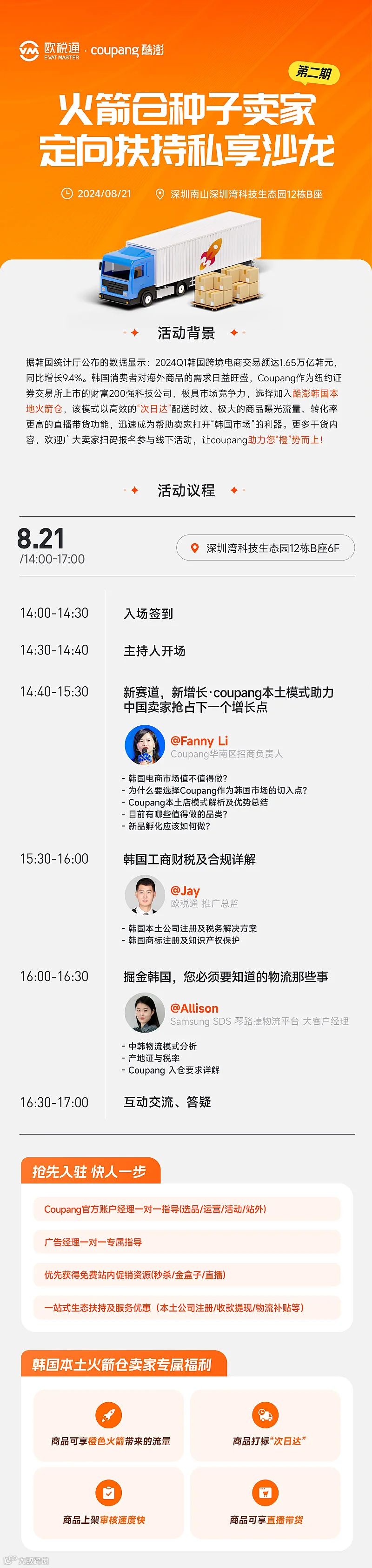 Coupang火箭仓种子卖家定向扶持私享沙龙-第二期