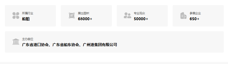展览会计划邀请招商局、广州港、北部湾港、茂名港、盐田港、厦门港、福州港、中山港、东莞港、苏州港、宜昌港、三亚港、盐城港等业主单位,中国中铁、中国中交、中铁一局、中铁二局、中铁三局、中铁建工、中交一公局集团、中交二航局、中交第四公路工程局等施工单位,中国电信、中国联通、中国移动、华为、浪潮集团、海康威视、浙江大华、中软国际、西井科技、思爱普(中国)、达闼科技、青岛海信等集成商,三一重工、徐工集团、上海振华、华东重机、哈尔滨工程机械、海西重机、科尼起重机、八达重工、法兰泰克重工等港机企业,太仓港集装箱、青岛前湾集装箱、中国国际海运集装箱、大连集装箱、新世纪集装箱、新时代集装箱、太仓国际集装箱、盛东国际集装箱、海沧新海达集装箱、蛇口集装箱等集装箱企业及产业链上下游企业参展,现场集政府产业园区发展成果展示,智慧港口、5G技术应用解决方案、港口及航运智能设备及应用技术、港口制造及基建、新能源船舶制造、招商引资、项目推介等于一体,是新时期新机遇下深入各城市交通产业合作、助力企业开发“一带一路”沿线国家市场的重要载体,也是推动粤港澳大湾区交通一体化建设的重要平台。