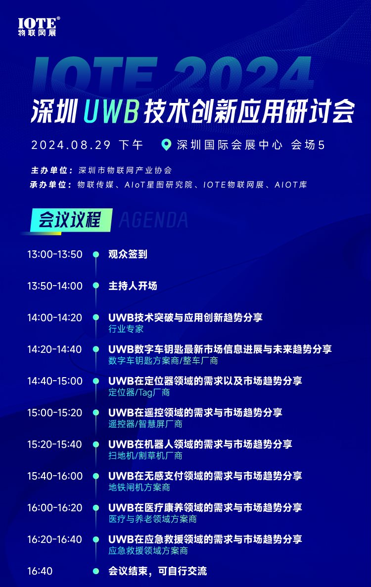 所以,基于这样的背景,我们将会举办一场“IOTE·2024深圳UWB技术创新应用研讨会”,大会将会以应用为导向,邀请UWB创新应用场景的厂商一起分享行业的最新信息与经验之谈,共同促进UWB生态更高的发展。