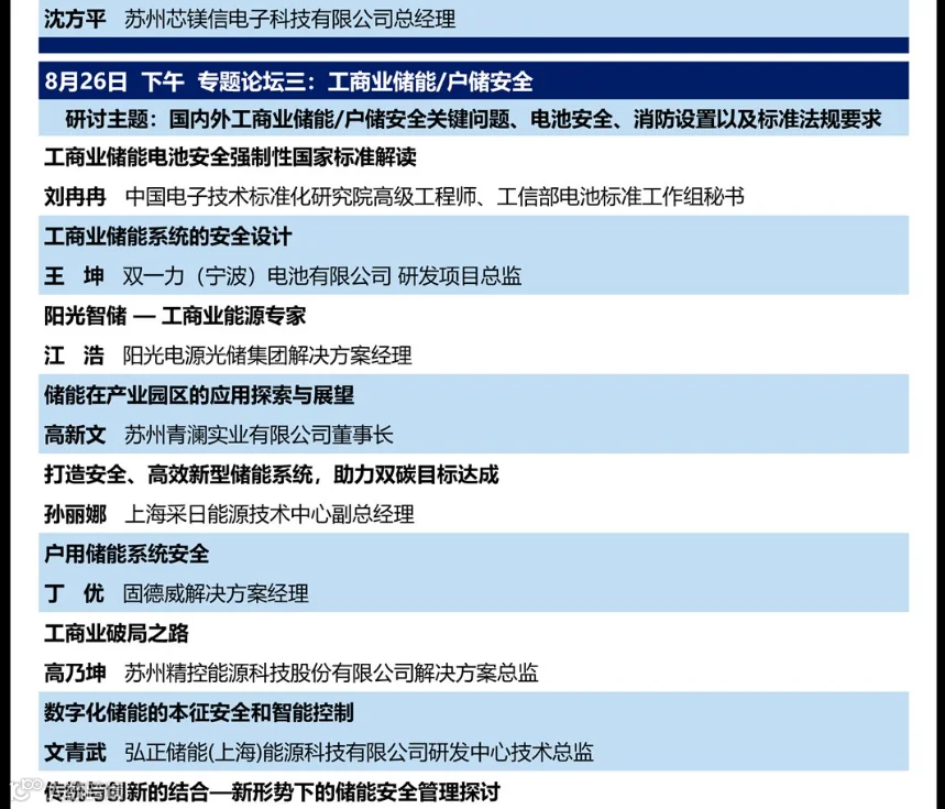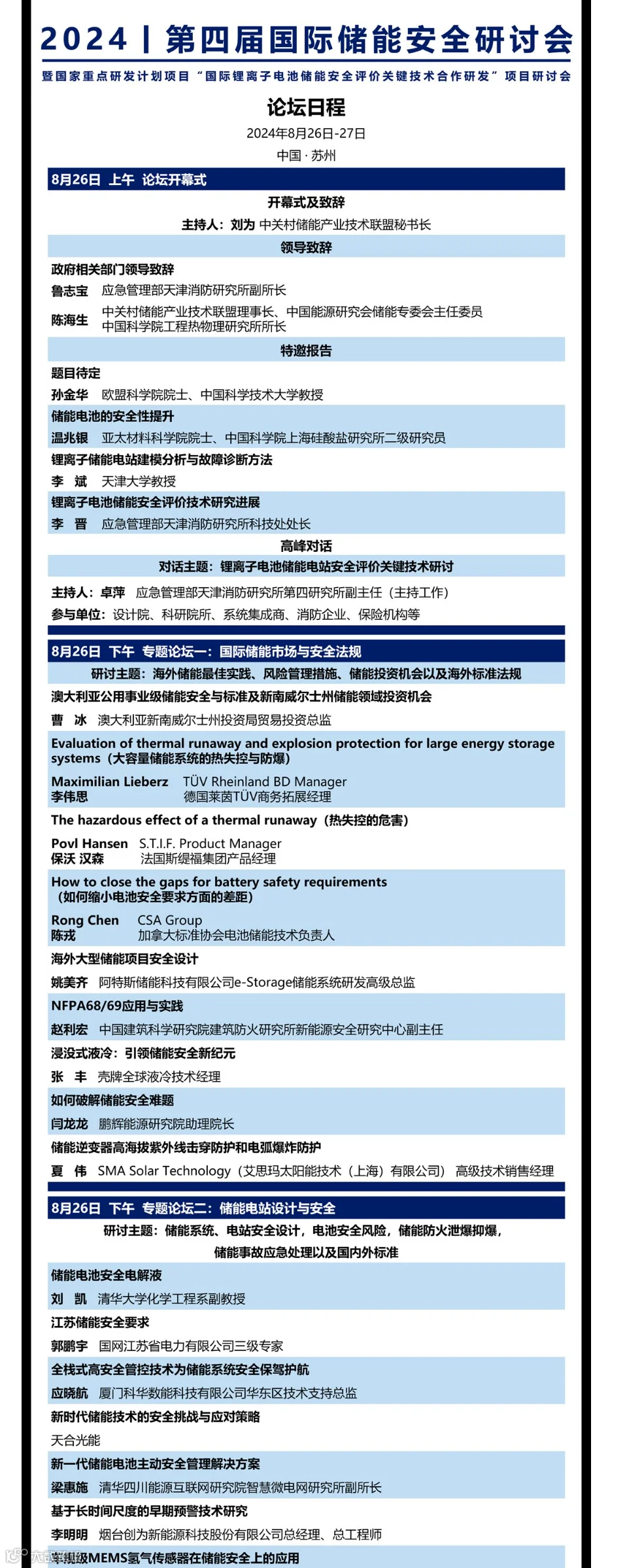 政府相关部门、高校、科研院所、设计院、电网、发电集团、储能系统集成商、电池厂商、保险机构、检测认证机构、消防企业以及安全解决方案厂商等