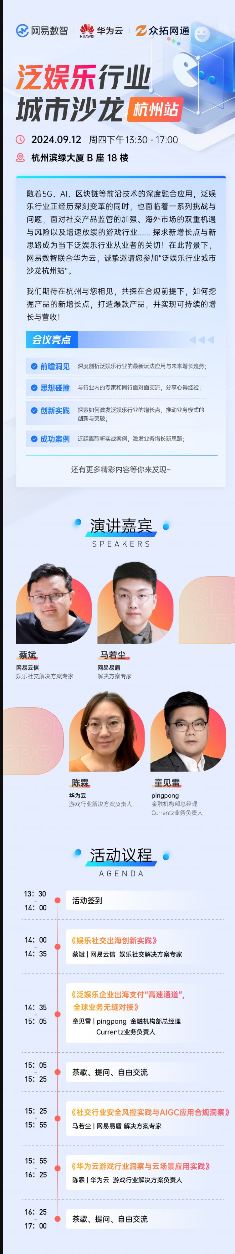 网易数智 X 华为云 | 泛娱乐行业城市沙龙(杭州站)| 来听听大厂在合规前提下,如何挖掘产品的新