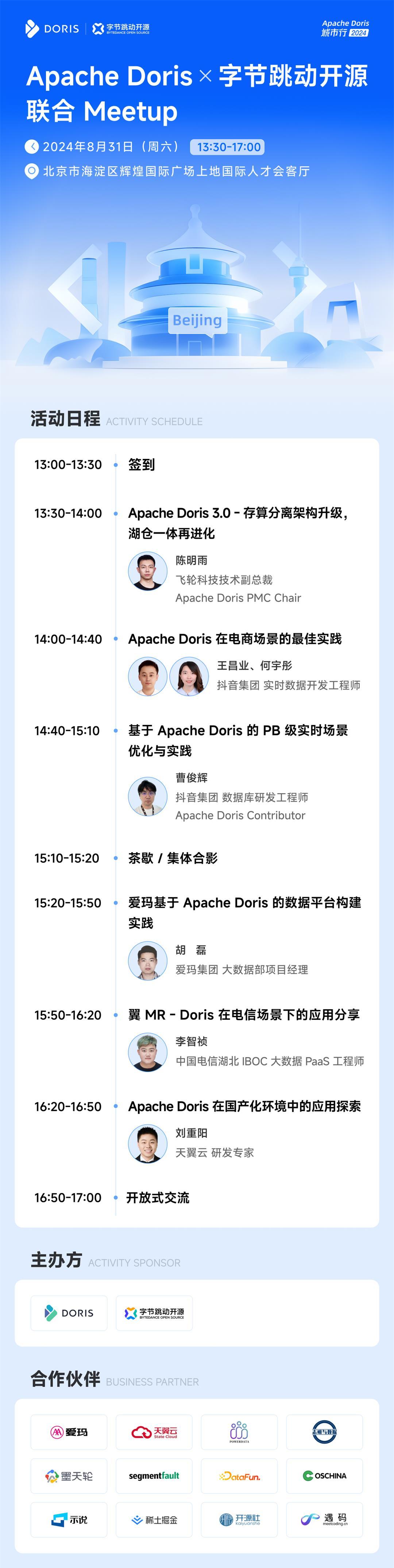 Apache Doris「城市行」 第 4 弹--北京站开启报名!Apache Doris 社区与字节跳动开源联合发起,