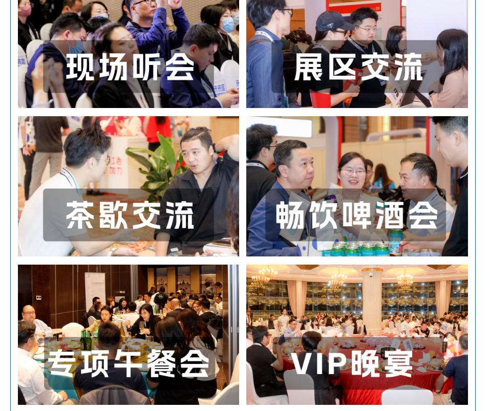 在现场,主办方也精心策划了论坛区、研讨会、展区、茶歇区、休闲区、啤酒会、专项午餐会、高层交流晚宴等不同形式的休闲商务场合,为参会嘉宾提供更多面对面沟通交流机会,助力旅游业者轻松结交旅游业中高层人脉,高效对接商机资源!