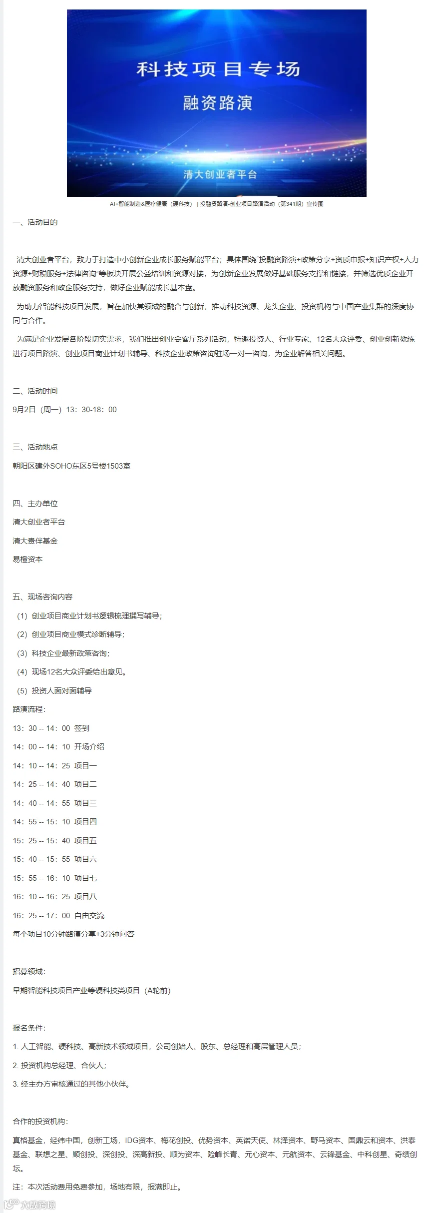 AI+智能制造&医疗健康(硬科技) | 投融资路演-创业项目路演活动(第341期)