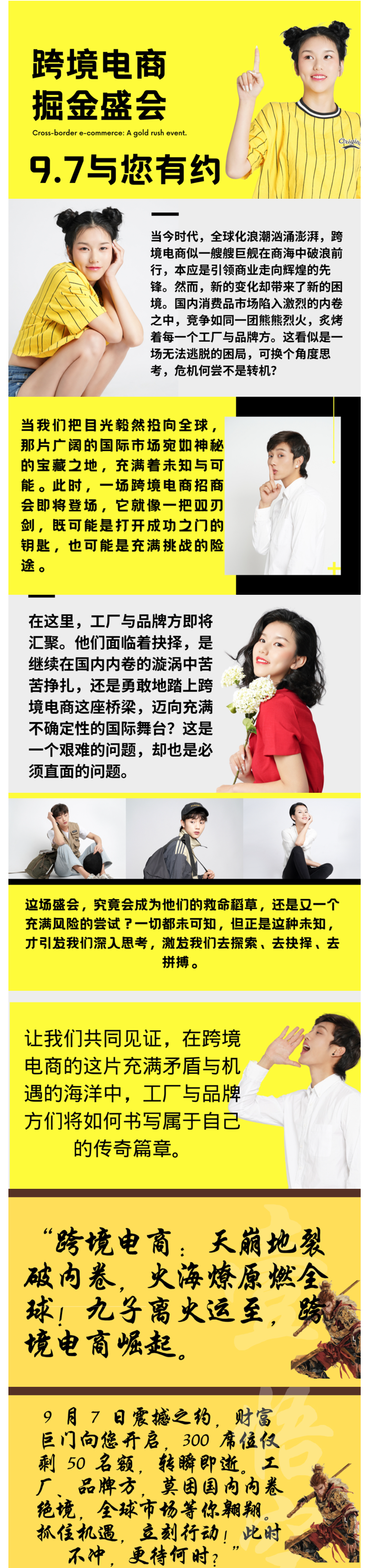 跨境电商链接海外专享 - 说明:踏上悟空的数字祥云,搭乘跨境电商的高速列车,乘风破浪,跨越重洋,在全球化的舞台上,开启财富密码,挖掘新的利润宝藏。让我们以无畏的勇气和创新的思维,在跨境电商的广阔天地中,书写属于自己的传奇篇章,共同创造财富新纪元!欢迎实体企业报名参加!