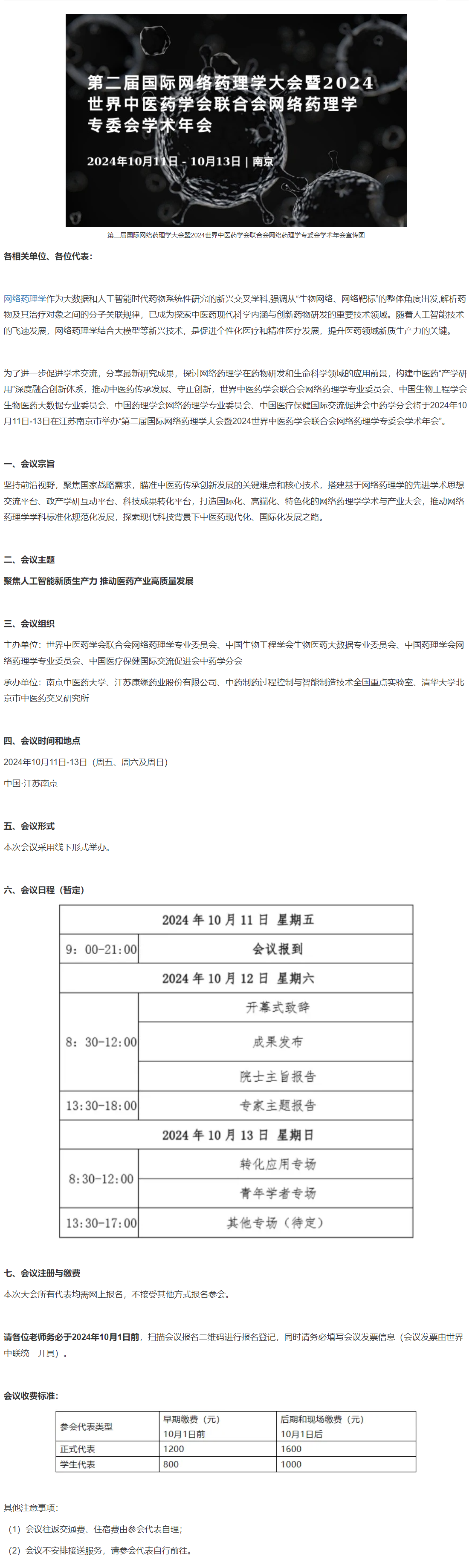 第二届国际网络药理学大会暨2024世界中医药学会联合会网络药理学专委会学术年会