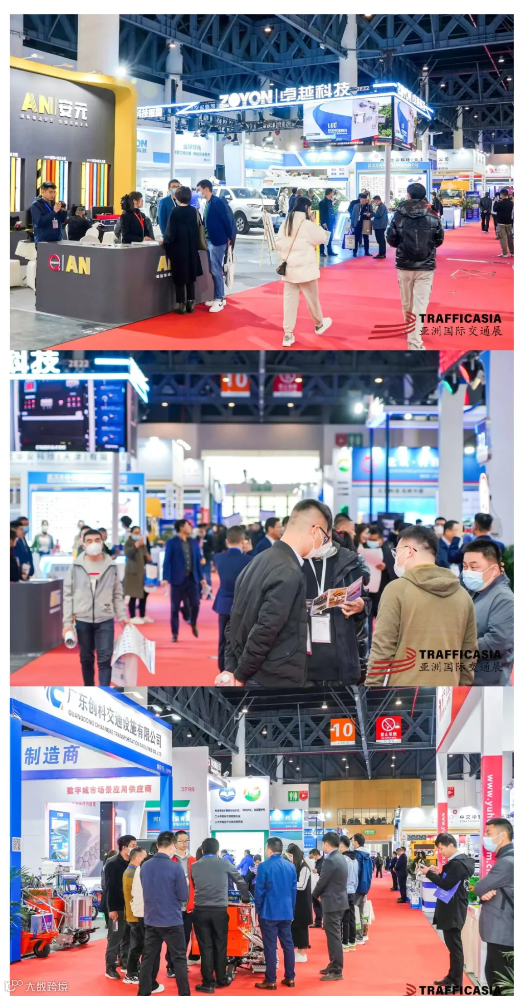 TRAFFIC ASIA 2023亚洲国际交通展于2023年3月24日-26日在中国(成都)西部国际博览城成功举办。本届展会再创新高,展览面积20000平方米,汇聚了甘肃路桥、道明光学、华日升、山东神龙、日新月异、圣路新材料、岳杰玻璃、恒路通、小安质品、创科交通、卡斯特、慧谦交通、中泰旭伟、中海航、华鹏交通、北京京衢、云南一路、贵达交通、华安交通、瑞航交通、航天检测、法马智能、中电科南湖院、山西交控、大山路桥、四川玄武岩研究院、东方雨虹、长风智慧、中交华安、地洲智云、山西运安、四川智慧交科、上海有间、欧感科技、西安彩桥、成都睿铂、司南导航、中德新亚、东方致远、卓致力天、中电众益、蓝航中科、四川数字交通、北筑沥青、光谷卓越、中电波、广东建科、今谷神箭、基康仪器、SOIL、ACLL、俄罗斯石油沥青、亚科中国、法尔胜、施贝中国、毛勒欧洲、德州海联等208家国内外不同领域的龙头企业携最新技术与新产品集体亮相。展会吸引来自俄罗斯、巴基斯坦、印度、印度尼西亚、土耳其、韩国、哈萨克斯坦、白俄罗斯、香港等全球10余个国家和地区的23000名专业观众,超过93%的展商表示对展会非常满意,95%的观众确定将继续参观支持,创纪录展会规模、博专结合的生态布局和精彩纷呈的现场活动,成为全球聚焦的舞台和中国公路交通基础设施产业在全球的名片。