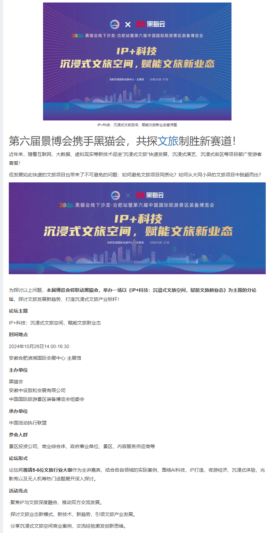 黑猫会 安徽中设致和会展有限公司 中国国际旅游景区装备博览会组委会
