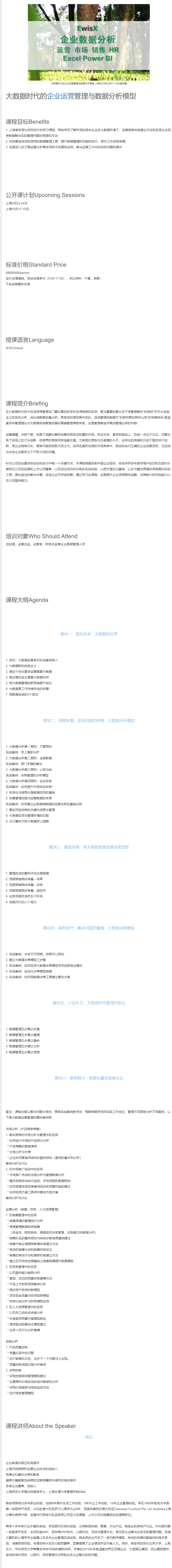 大数据时代的企业运营管理与数据分析模型 上海2024年10月17-18日