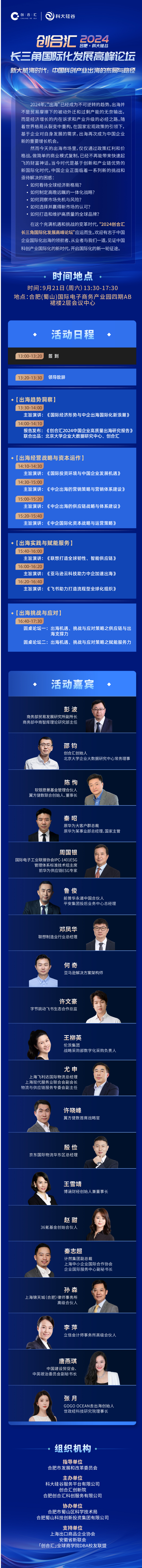 邀请函 | 2024创合汇长三角国际化发展高峰论坛·新大航海时代:中国科创产业出海的布局与路径