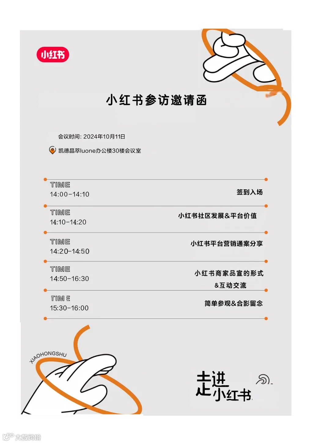 14:15-16:00从一楼大厅,引导乘电梯前往小红书会议室30层