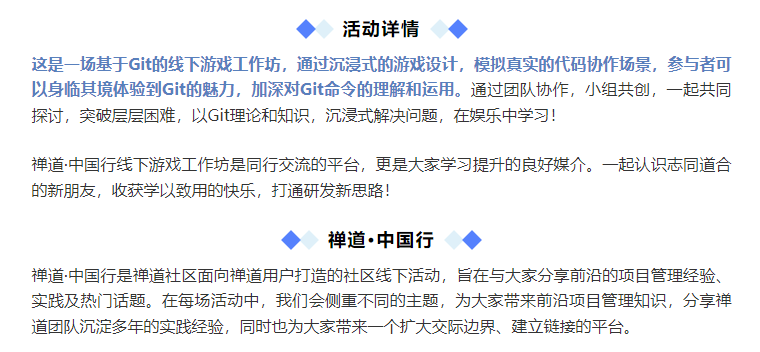 现在就报名9月21日禅道·中国行(北京站)「Git游戏工作坊」,开始一场Git探索之旅吧!
