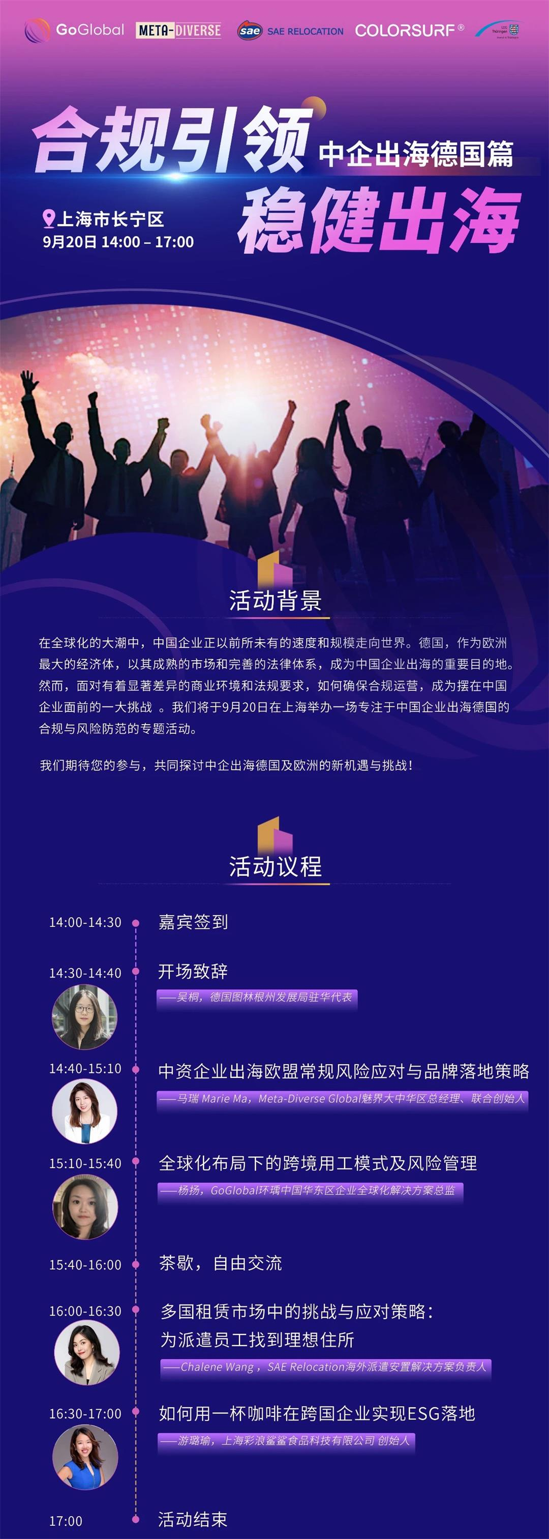 合规与风险防范的专题活动。我们期待您的参与,共同探讨中企出海德国及欧洲的新机遇与挑战!