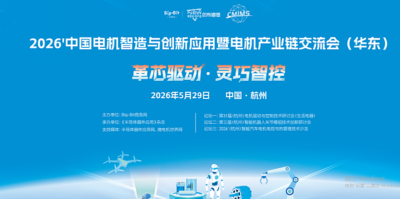 在智能制造与新能源技术的强劲推动下,电机行业正步入创新与变革的快车道。在此背景下,由Big-Bit商务网主办、《半导体器件应用》杂志承办的2026’中国电机智造与创新应用暨电机产业链交流会(华东)将于2026年5月29日在杭州隆重举行。
