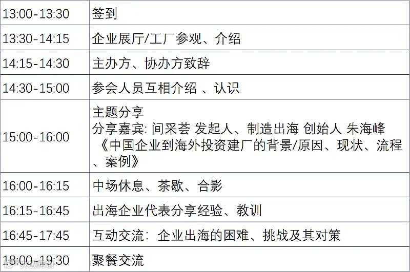 参会人群:仅限大中型“制造业”、在职的采购经理人,已经出海和有出海计划企业优先(闭门会议,报名申请后收到主办方审核确认后方可参加,不符勿报,谢绝空降;签到时请携带名片签到后方可进入;谢绝其他第三方服务公司人员),人数50-60人。