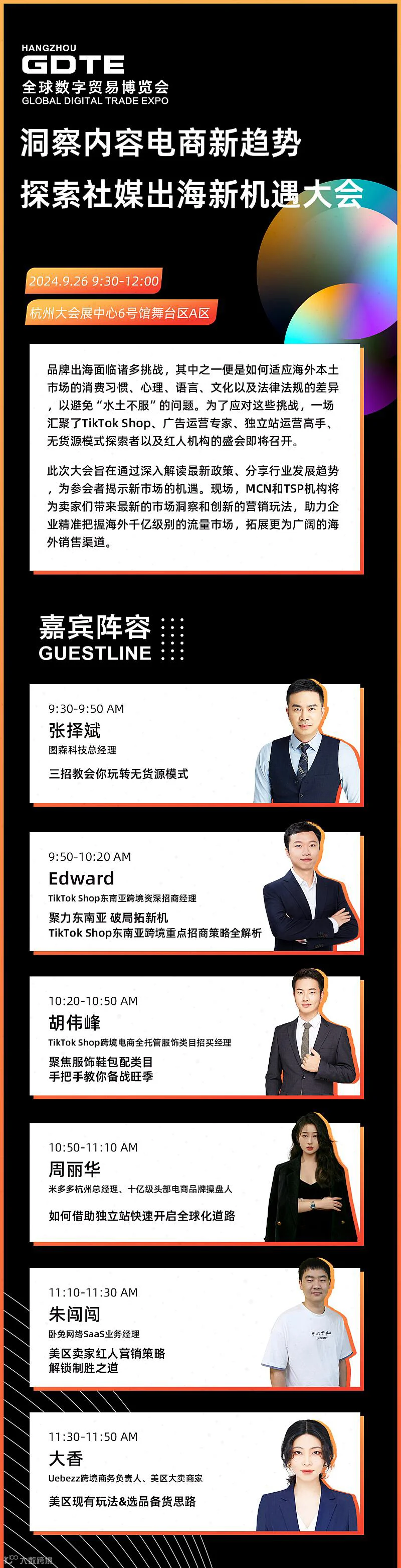 品牌出海面临诸多挑战,其中之一便是如何适应海外本土市场的消费习惯、心理、语言、文化以及法律法规的差异,以避免“水土不服”的问题。为了应对这些挑战,一场汇聚了TikTok shop、广告运营专家、独立站运营高手,无货源模式探索者以及红人机构的盛会即将召开。