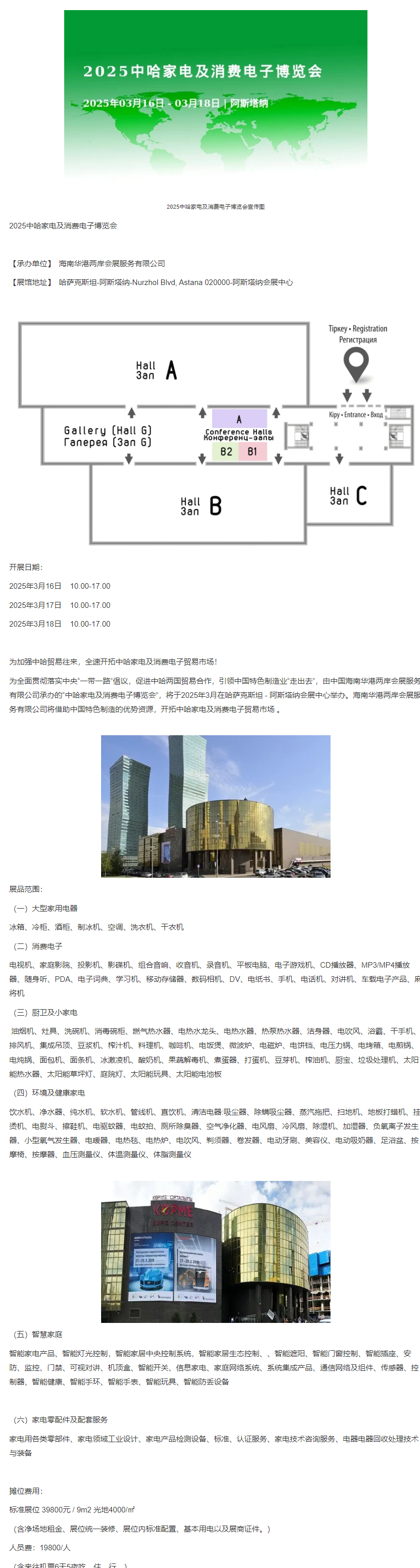 【展馆地址】 哈萨克斯坦-阿斯塔纳-Nurzhol Blvd, Astana 020000-阿斯塔纳会展中心