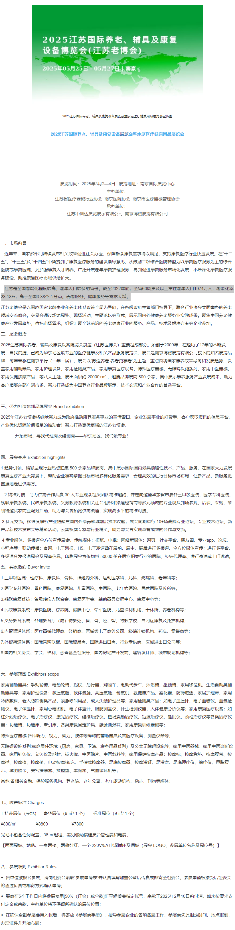 2025江苏国际养老、辅具及康复设备展览会暨家庭医疗健康用品展览会