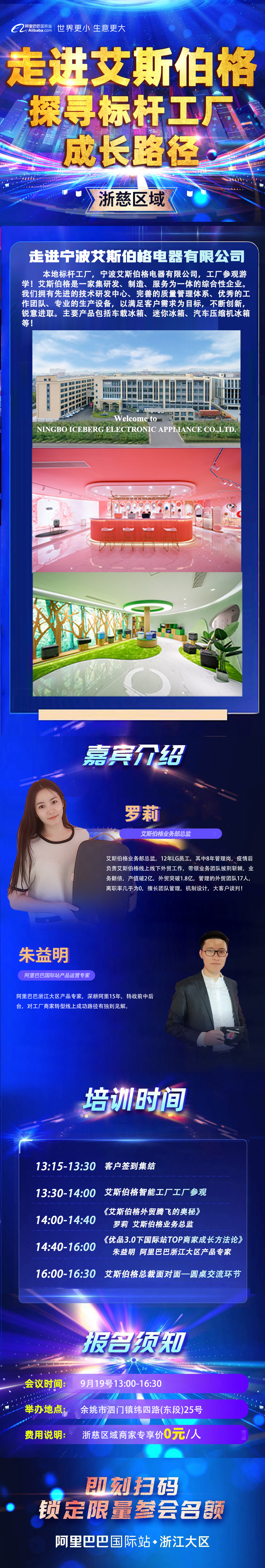 走进宁波艾斯伯格电器有限公司本地标杆工厂,宁波艾斯伯格电器有限公司,工厂参观游学!艾斯伯格是一家集研发、制造、服务为一体的综合性企业。我们拥有先进的技术研发中心、完善的质量管理体系、优秀的工作团队、专业的生产设备,以满足客户需求为目标,不断创新,锐意进取。主要产品包括车载冰箱、迷你冰箱、汽车压缩机冰箱等!