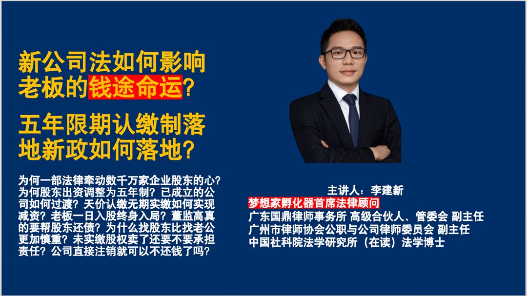 新公司法如何影响老板的命运【梦想家孵化器知识讲座9月第1场】