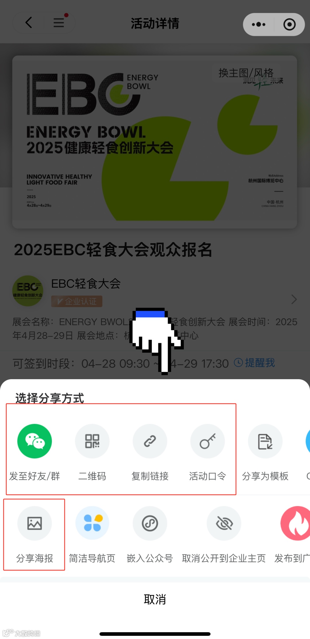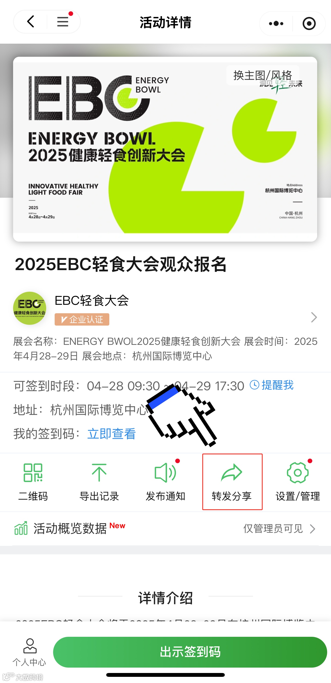 转发邀请好友报名,好友报名获得签到二维码并到场核销逛展,即可视为成功邀约!