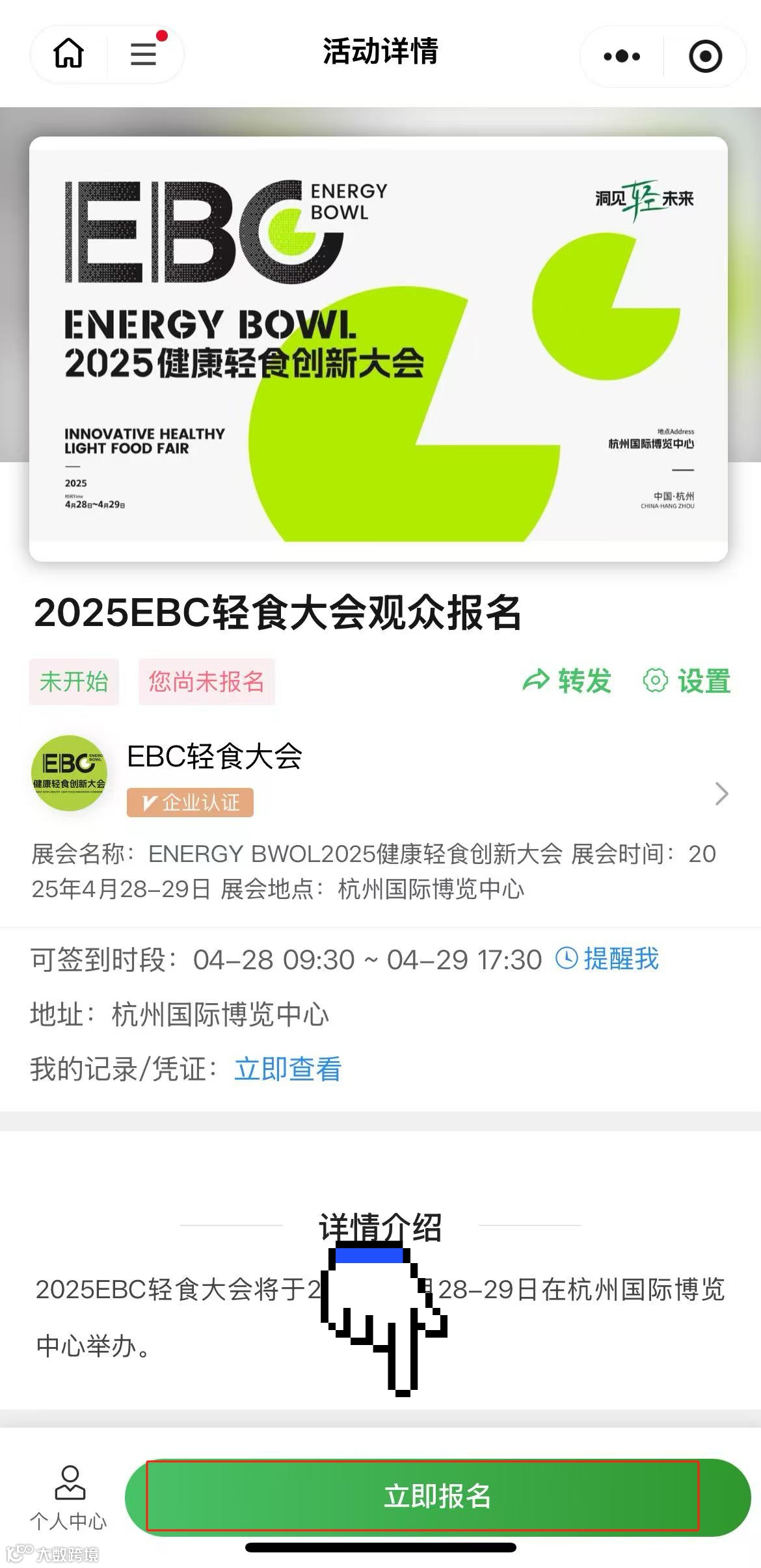点击“立即报名”填写信息,生成预登记二维码。