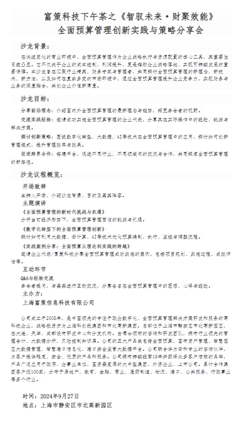 富策科技下午茶之智驭未来·财聚效能 全面预算管理创新实践与策略分享会