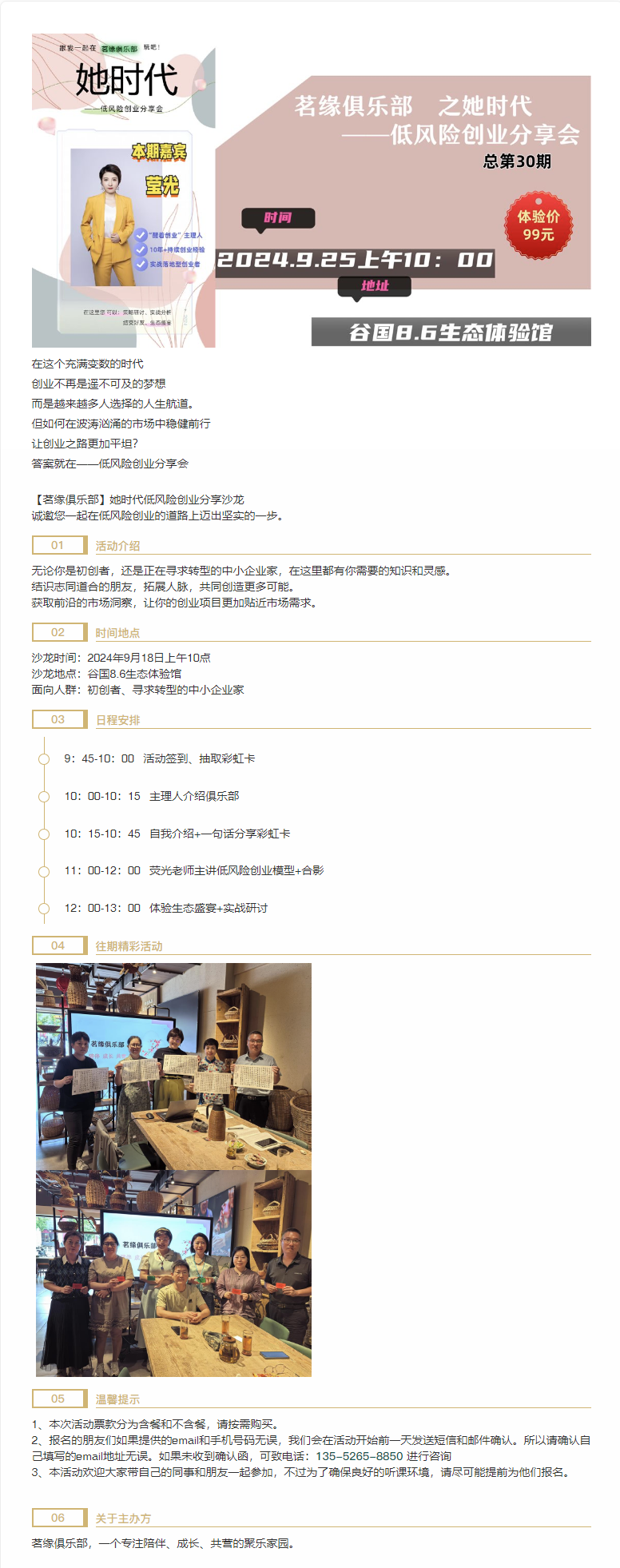 【茗缘俱乐部】她时代低风险创业分享沙龙