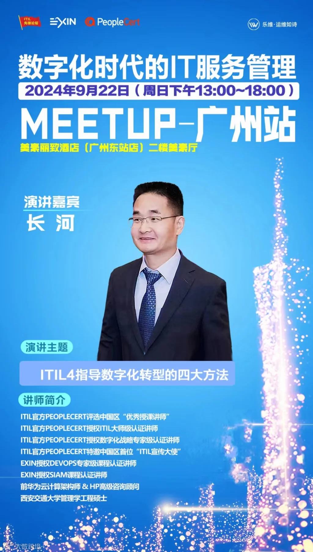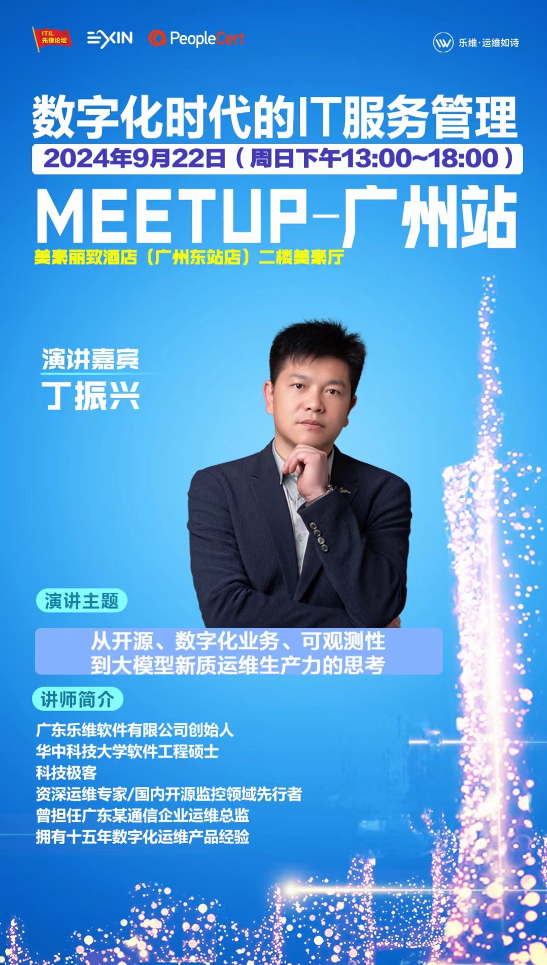 盛世华诞,喜迎双节,2024“数字化时代的IT服务管理”Meetup-广州站9月22日即将在美豪丽致酒店召开,本次活动是继深圳、北京、武汉、大连、青岛系列线下活动的姊妹篇,是由ITIL先锋论坛 & Exin & PeopleCert & 广东乐维软件有限公司 & IT达人圈共同发起的一场盛会。