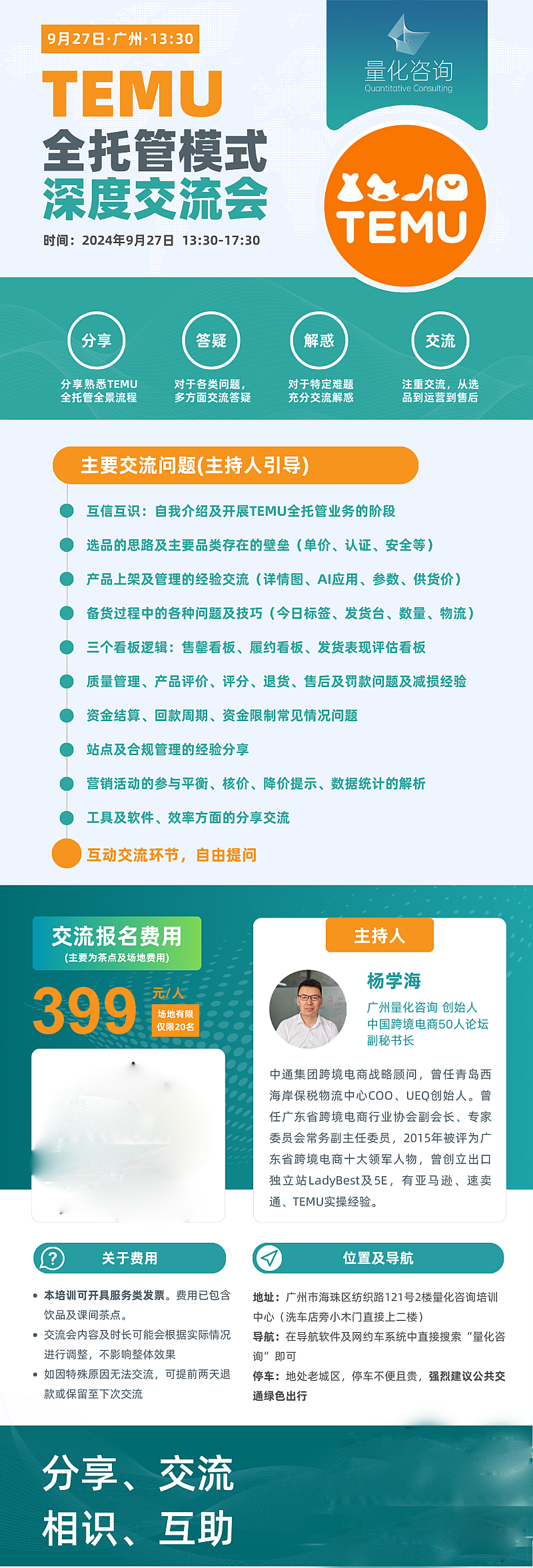TEMU全托管模式深度交流私享会 - 9月27●广州