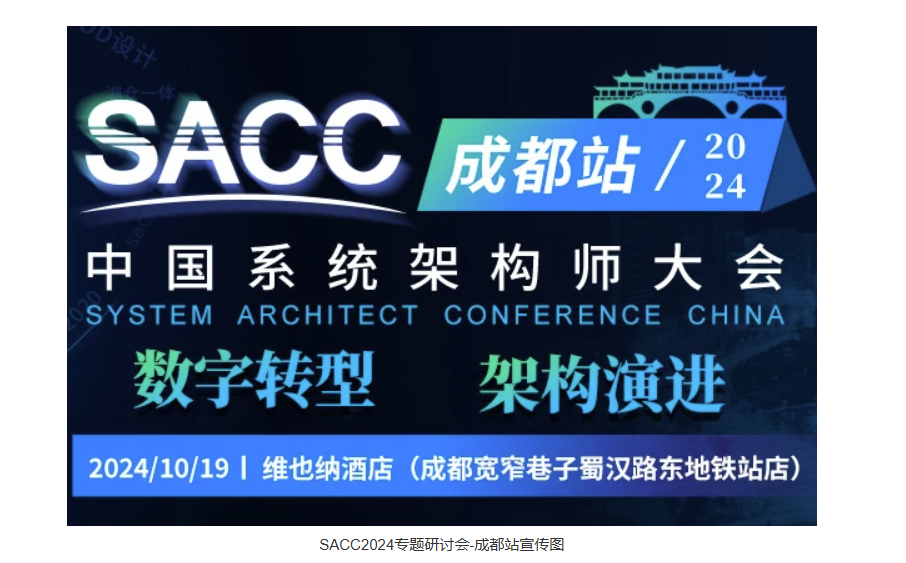 2024年10月19日,由IT168旗下ITPUB企业社区平台主办的中国系统架构师大会-专题研讨会·成都站,在维也纳酒店(成都宽窄巷子蜀汉路东地铁站店)举办。本届大会以“数字转型 架构演进”为主题,由原来的大会演讲模式,变革为专题研讨会模式,设置多专题研讨,云集国内CTO/CIO、技术总监、高级系统架构师和IT经理等技术人群,力争为各路豪杰奉献一场技术的饕餮盛宴。