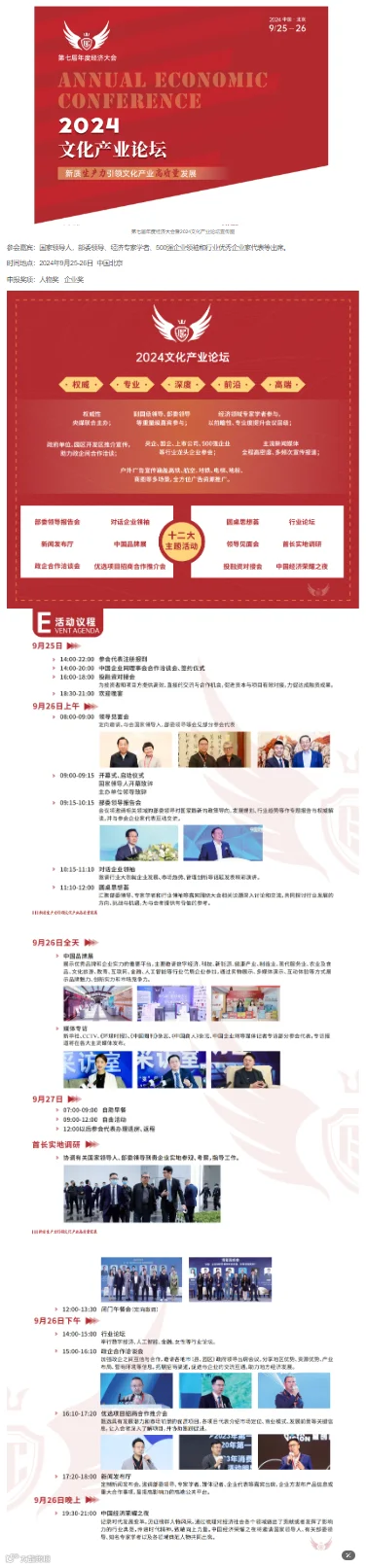 参会嘉宾:国家领导人,部委领导、经济专家学者、500强企业领袖和行业优秀企业家代表等出席。