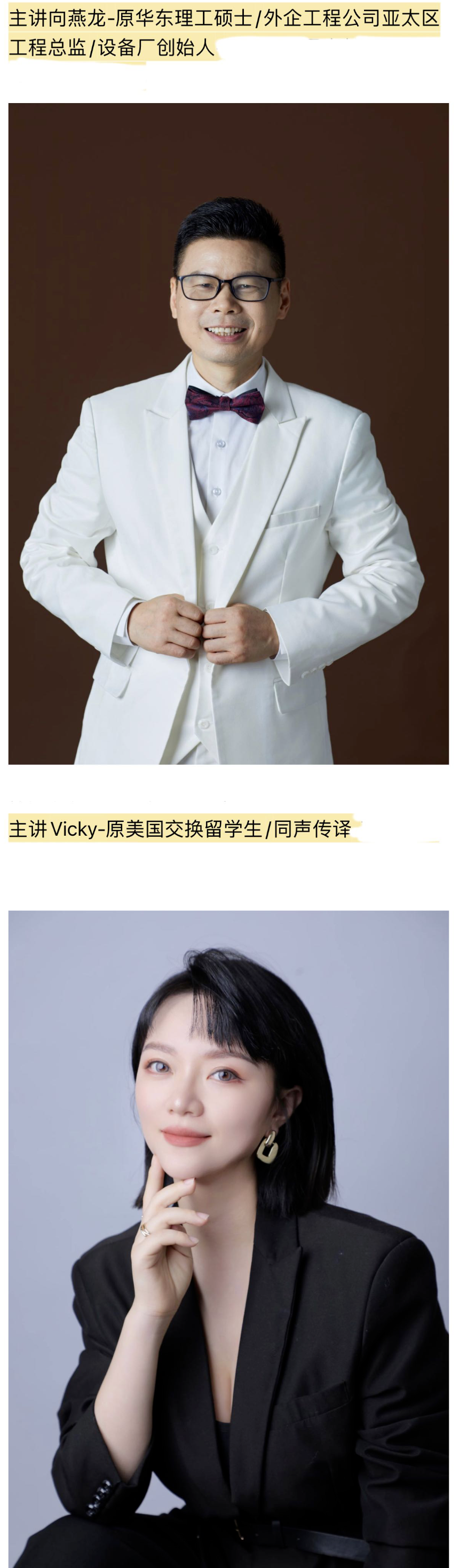 主讲向燕龙-原华东理工硕士/外企工程公司亚太区工程总监/设备厂创始人